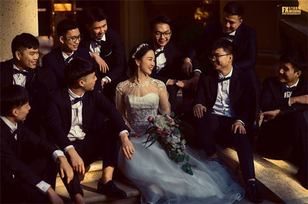 对于婚礼摄影来说,一天里以纪实为主的照片居多,而在仪式前后的空余时间,可以拍摄一些婚礼日的写真片。那种情到浓时的自然流露,无法用语言来表达。婚礼中的写真拍摄其实没有特定的要求,只要时间合理,任何环境都可以创作。这和传统意义上的婚纱照或写真都不同,有伴郎、伴娘的参与,多了一种互动的乐趣,新人也处在放松的状态,很容易捕捉到情绪生动、自然、有趣的瞬间。
